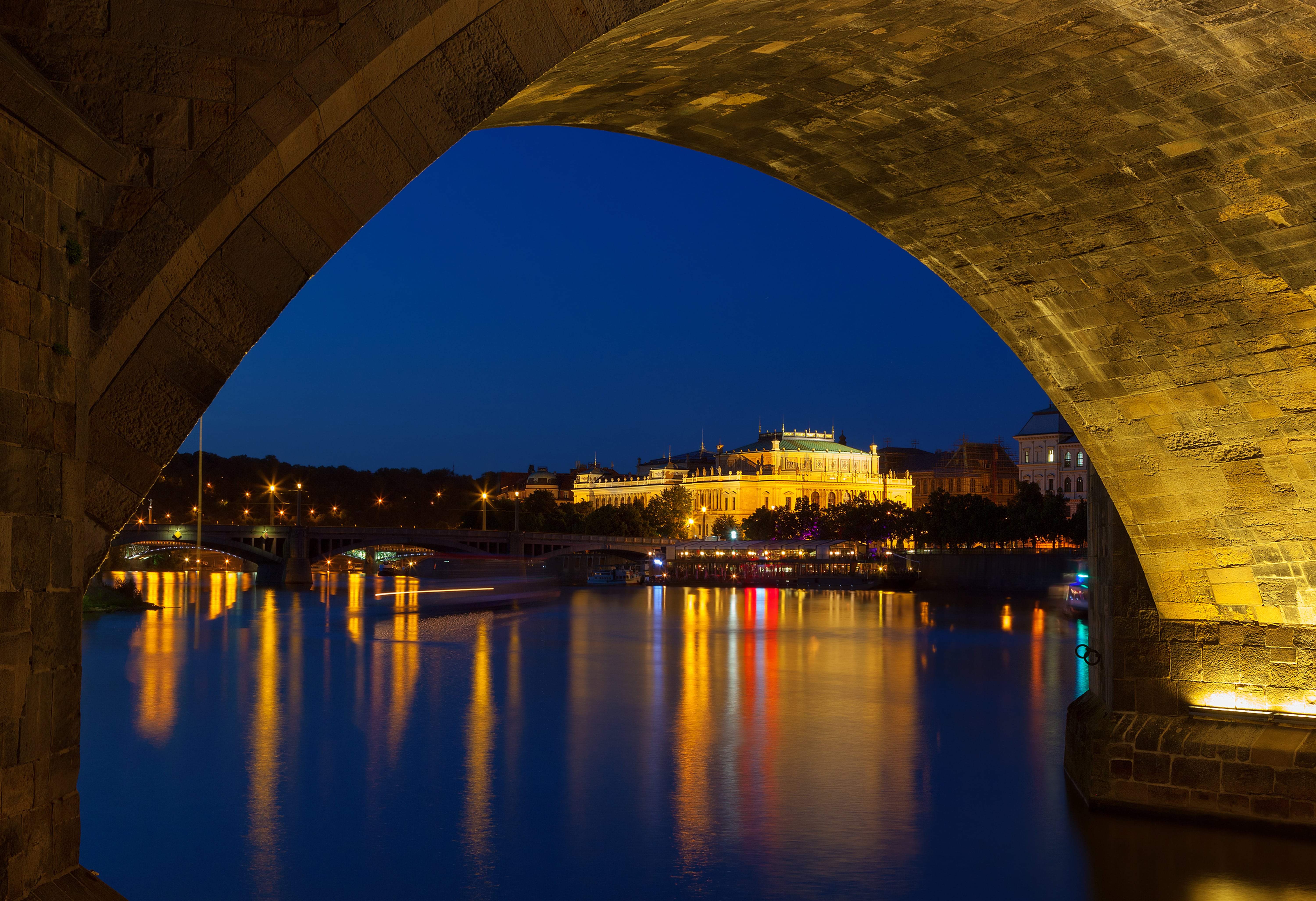 A two-hours night boat trip on the Vltava through the magic centre of Prague. Enjoy a unique view of the panorama of Prague Castle and beautifully illuminated Prague highlights. Unlimited-consumption reception accompanied by music.